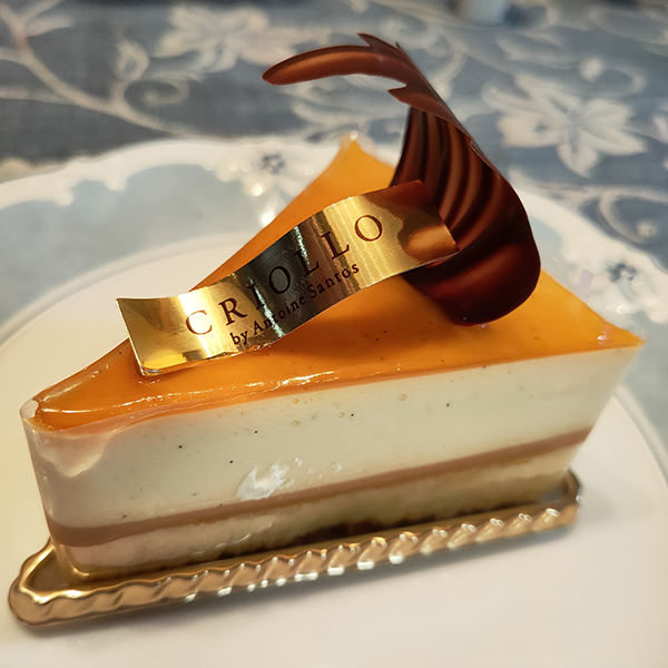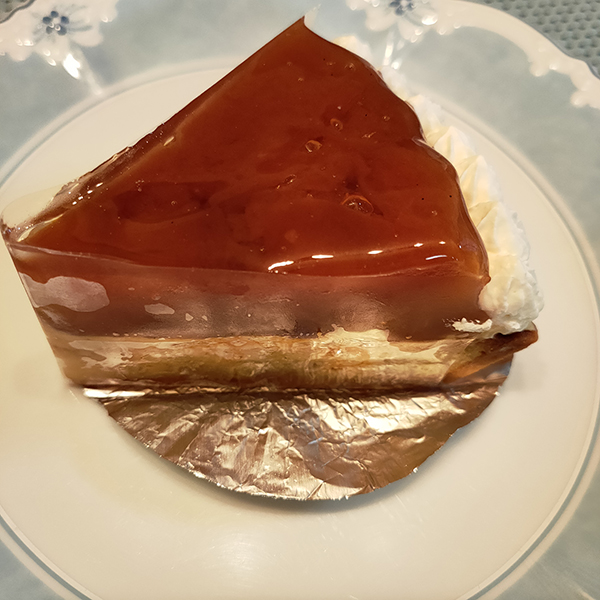 一番下の層にあるアーモンドの生地とナッツ類が香ばしく全体の骨格を支えている。これがないとただのムースで面白味に欠けるが、この最下層があってこそ。これにキャラメルクリームのほろ苦さが加わり、ヴァニラクリームも生きてくる。
