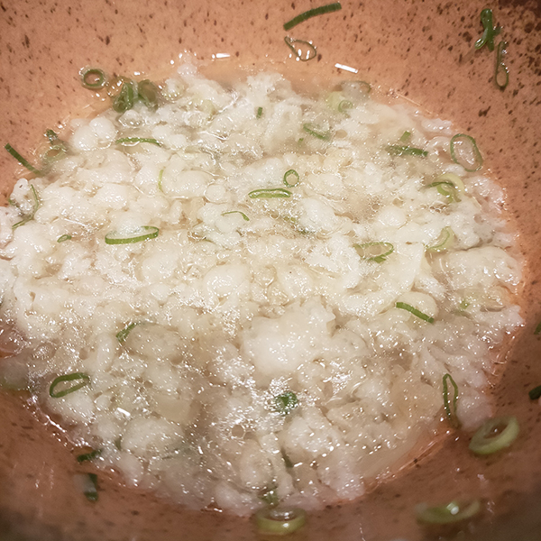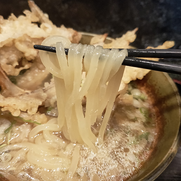柔らかめの茹で加減でコシはそれほど強くないが、つるつるとした喉越しの良さは魅力的。これならば冷たいうどんにした方がより持ち味を発揮しそうだ。