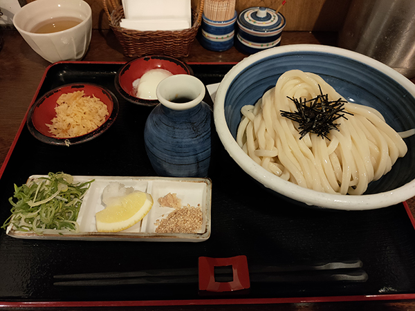 次いでつゆを掛けて。後がけタイプというところがいい。うどんの旨さが引き立つ。