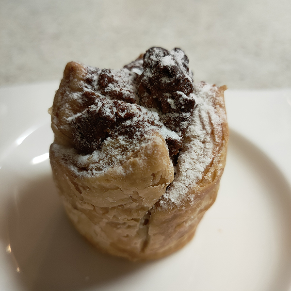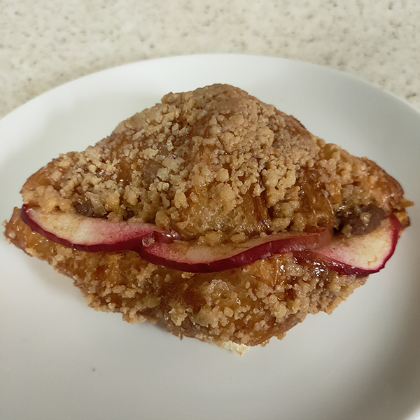リンゴのピューレにレモンのカスタードクリームをあしらったひと品でレモンの酸味が心地よく味付けは文句なしだが、クロワッサンそのものがちょっとしんなり気味。