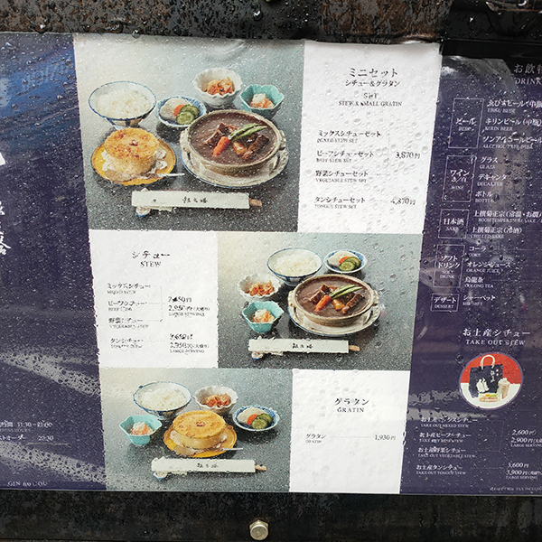シチューはビーフ、タン、ミックスの3種類。それ以外はグラタンのみといたってシンプル。