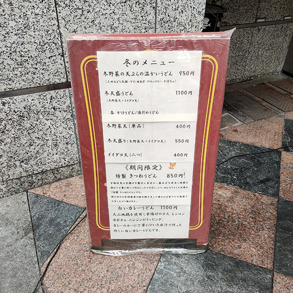 立て看板の季節もののメニューにはさり気なく白いカレーうどんがあってかなり気になるところではあるが、これはまたの機会にしよう。