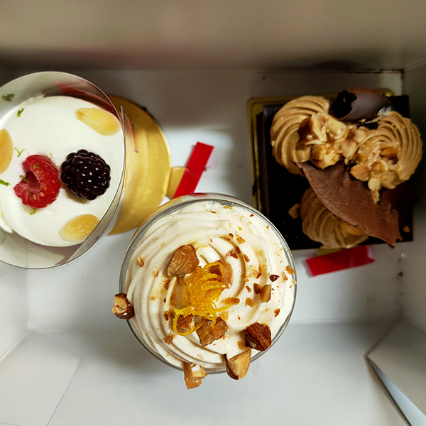 サヴァラン生地を赤ワインのシロップに漬けにヨーグルトとシナモン風味の生クリームを使用している。他にも、手の込んだことを色々とやっているのだが、ちょっとやり過ぎ感が強い。これは他のお店でも感じたことだが、もっとシンプルで美味しいサヴァランが食べたい。