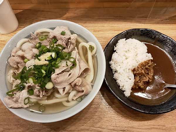 肉うどんにミニカレーが付いたセットを注文。カレーは追加料金わずか200円と良心的だ。