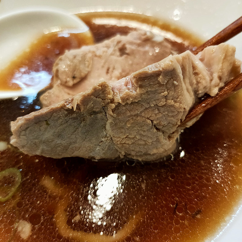 特筆すべきは極厚のチャーシュー。驚くほど柔らかいため、直ぐにほぐれる。この厚さでも全く抵抗感がない。味の染み具合も申し分なくとても美味しい。