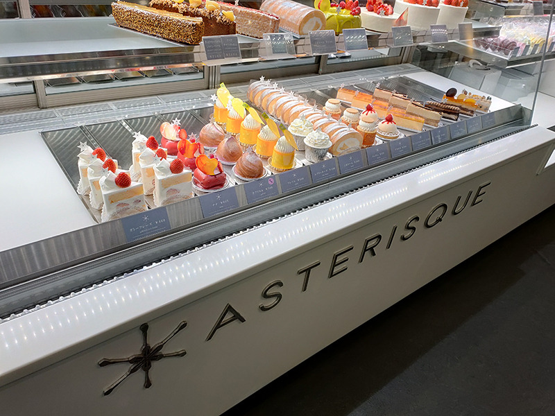 ショーケースにはこれまたスタイリッシュなケーキが並ぶ。