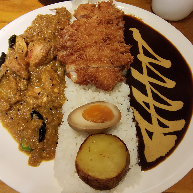 カツカレーとホールスパイスカレーの組み合わせをお願いした。