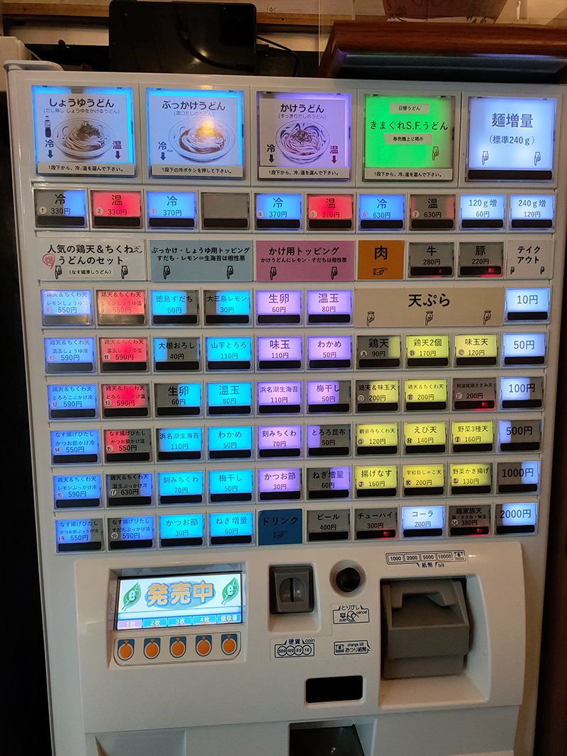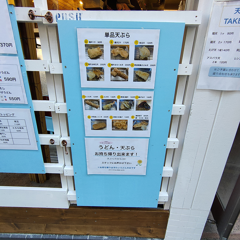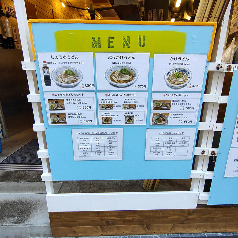 メニューを見るとどうやら讃岐うどんをのお店で、中を覗くと立ち食い店の様だが、それほど時間に余裕がある訳ではないのでちょうどいい。