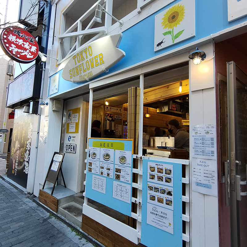 うどん屋さんらしからぬ爽やかな外観。どことなく見覚えがある様な・・・