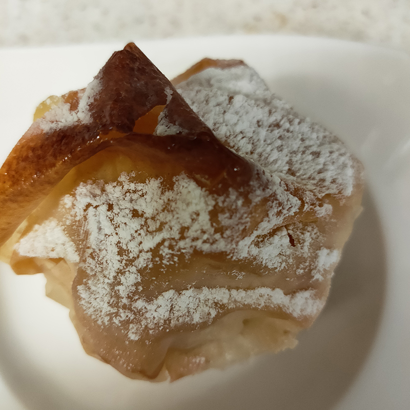 店名を冠したお菓子。リンゴのソテーとクリームを包む薄いパイ生地がサクサクと実に軽快なひと品。