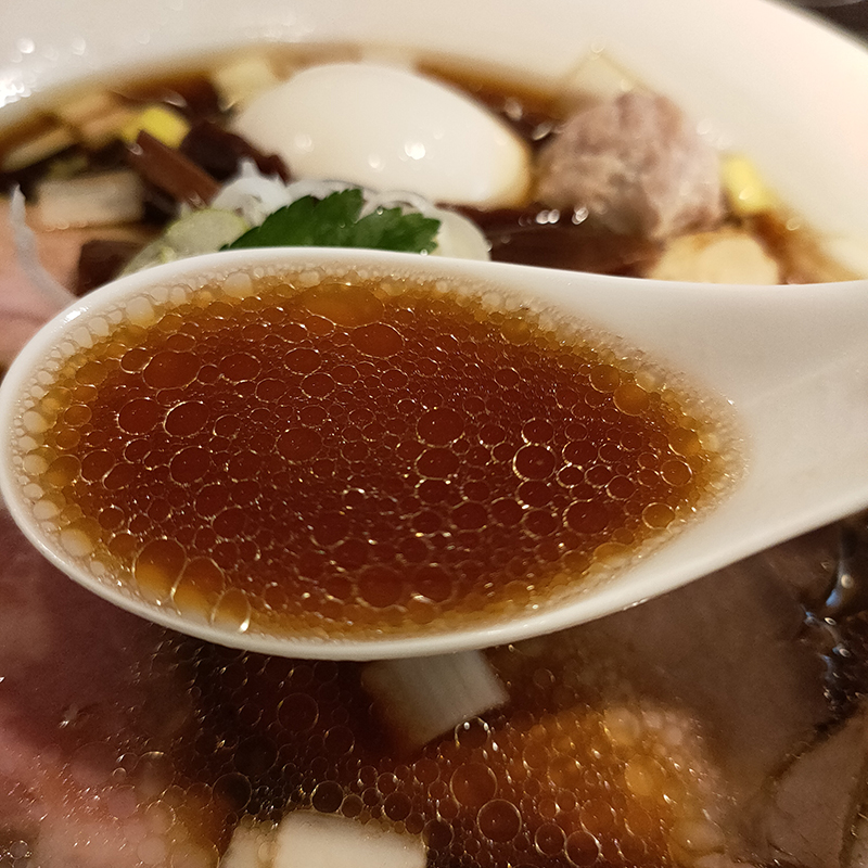 スープは鶏の旨味をしっかりと感じられるが変に甘さが突出していところに好感が持てる。これを濃厚な醤油が巧く抑えているイメージだ。複数の醤油をブレンドしているだけあって、単調にならず深みを感じる。