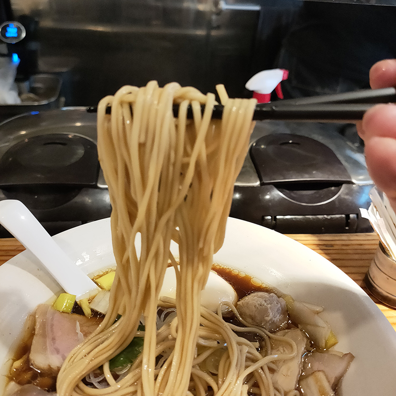 中細ストレート麺はシャキっとエッジが効いていて、スープとの相性がいい。