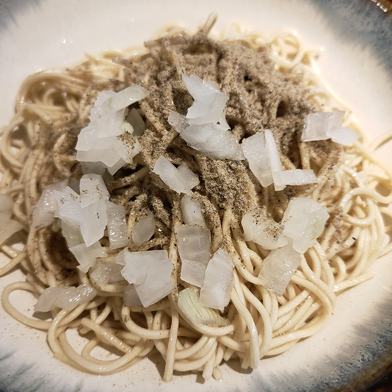 7,8分ほどで供された。見た目の印象は醤油の色合いがかなり濃い。