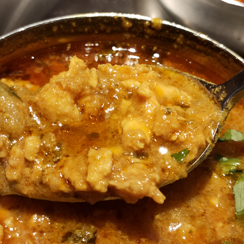 チキンキーマがバランス的には一番でポークカレーは無理に辛口に寄せるために、チリパウダーを多く使っているため、チリパウダーの香りが突出している。下の写真はチキンキーマ。