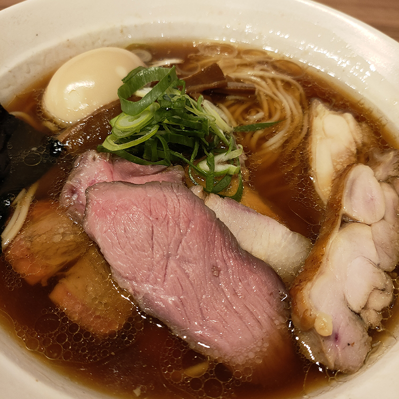 具材はどれもいい出来映えで玉子の半熟加減が絶妙。鶏チャーシューも味が染みていてスープにもよく合う。