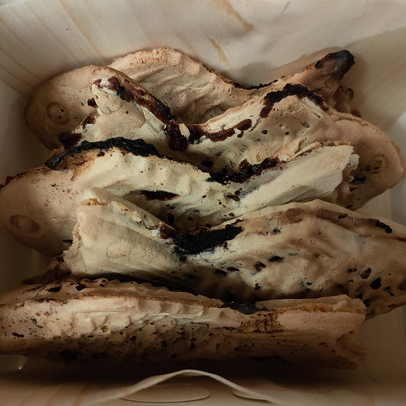 見た目だけでも皮の薄さがわかる。こちらを軽くトーストして頂いた。