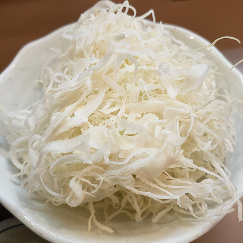 メニューを見るとキャベツ100円を発見。そう言えば、玉子でとじたカツ丼にはキャベツが付かないがどうなのだろうと思って追加でお願いした。キャベツはソースを掛けて頂くため、一緒に頂くのは味の方向性が違って適さないが、いい箸休めになる。