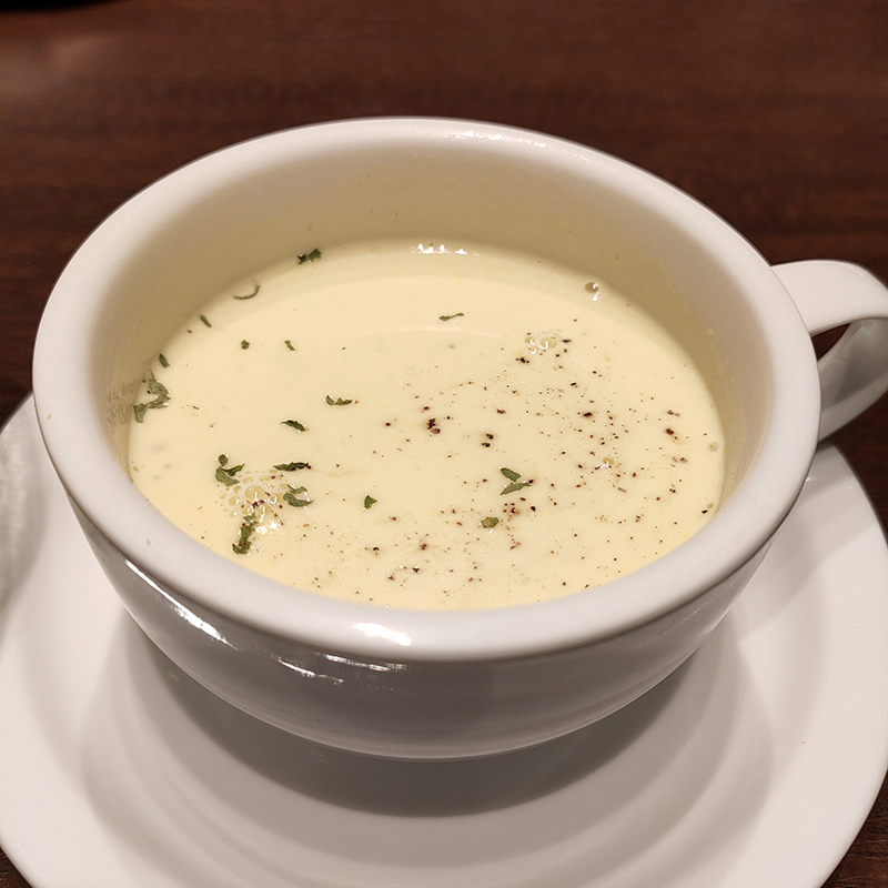 スープはとても円やかでランチに付いてくるものとしては十分に満足がいくもの。サラダはごくふつう。