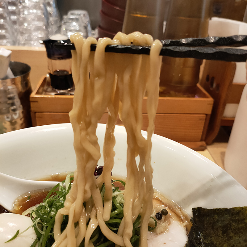 麺は細麺か手もみ麺が選択できるのだが、今回は後者をお願いした。平打ちの麺はつるつると食感が心地よく、旨味十分でスープとの相性もいいが、このスープなら細麺でもありだと思う。