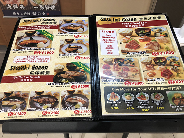 よく見ると海鮮丼やお刺身もある様だが、こちらは観光客向けか?