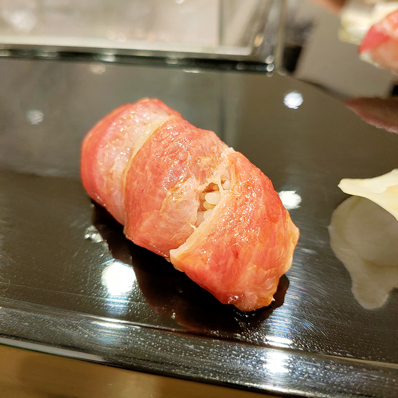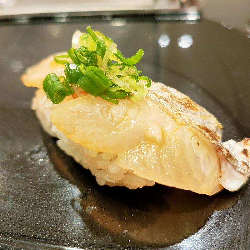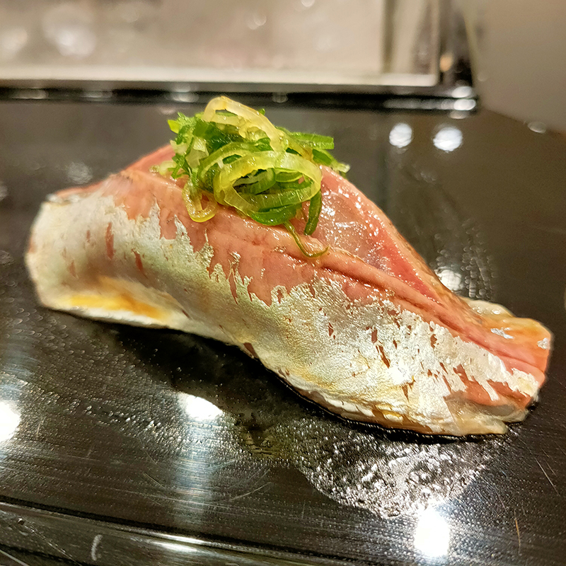 太刀魚のお寿司は珍しいが、水分が多すぎて蛋白なのではないだろうか、と思っていたのだが、炙ることで水分を飛ばしてくれるのでキチンとすしだねとして成立していた。