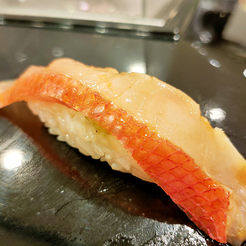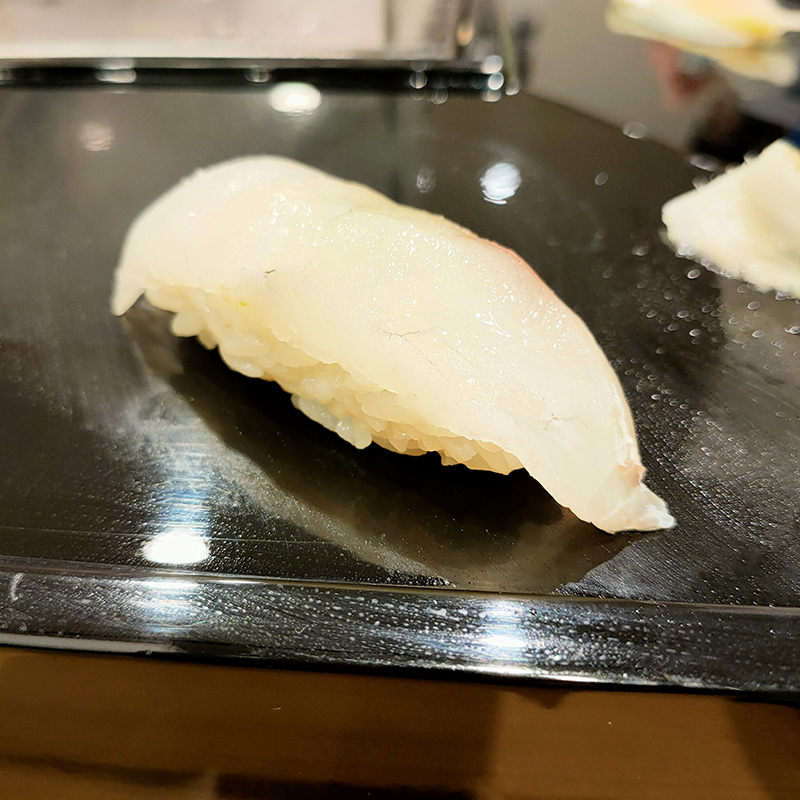 こちらはツメではなく煮切りで食べさせてくれる。金目鯛しかり、生の魚だけではなく、キチンと江戸前の仕事がしてあるところがいい。