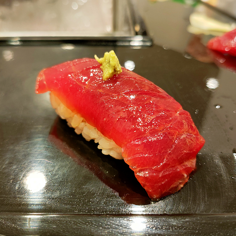 いきなりマグロの先制パンチ。脂のりがよく香りも高い。