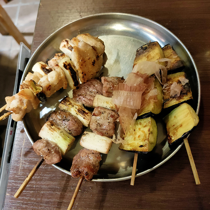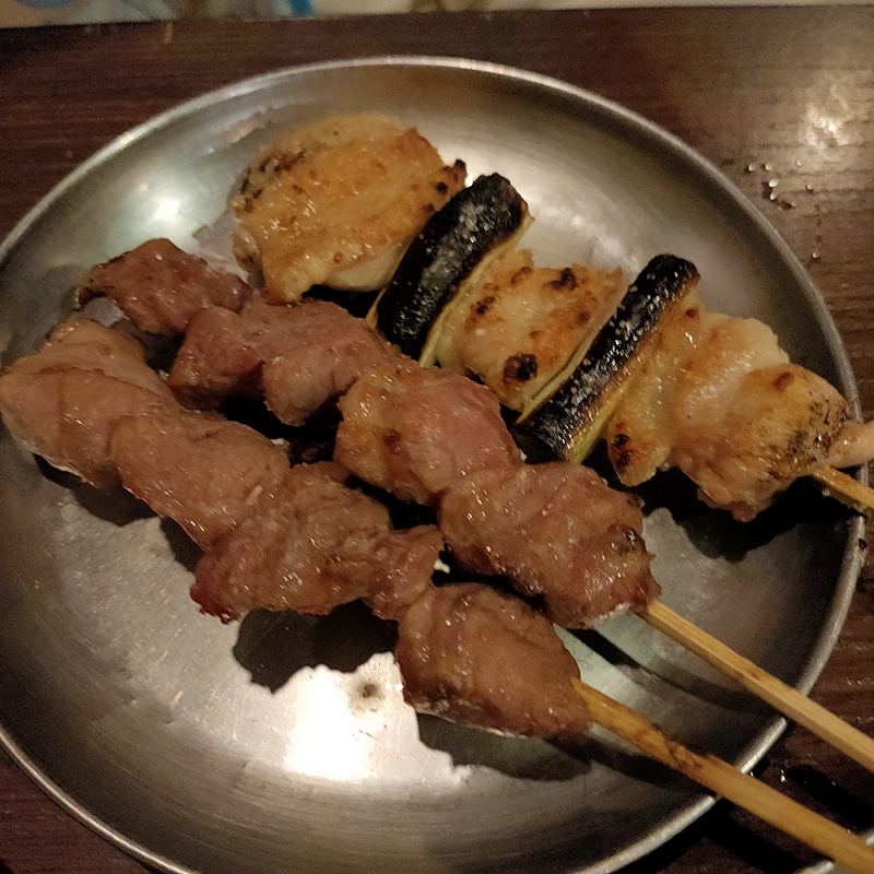 焼きとり、焼きとんの両方が揃う。料金は1本110円と良心的。