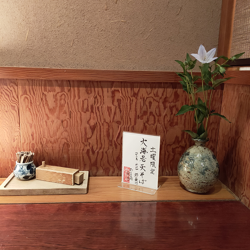 残念ながらお目当ての大海老天ぷらそばは既に売り切れ。