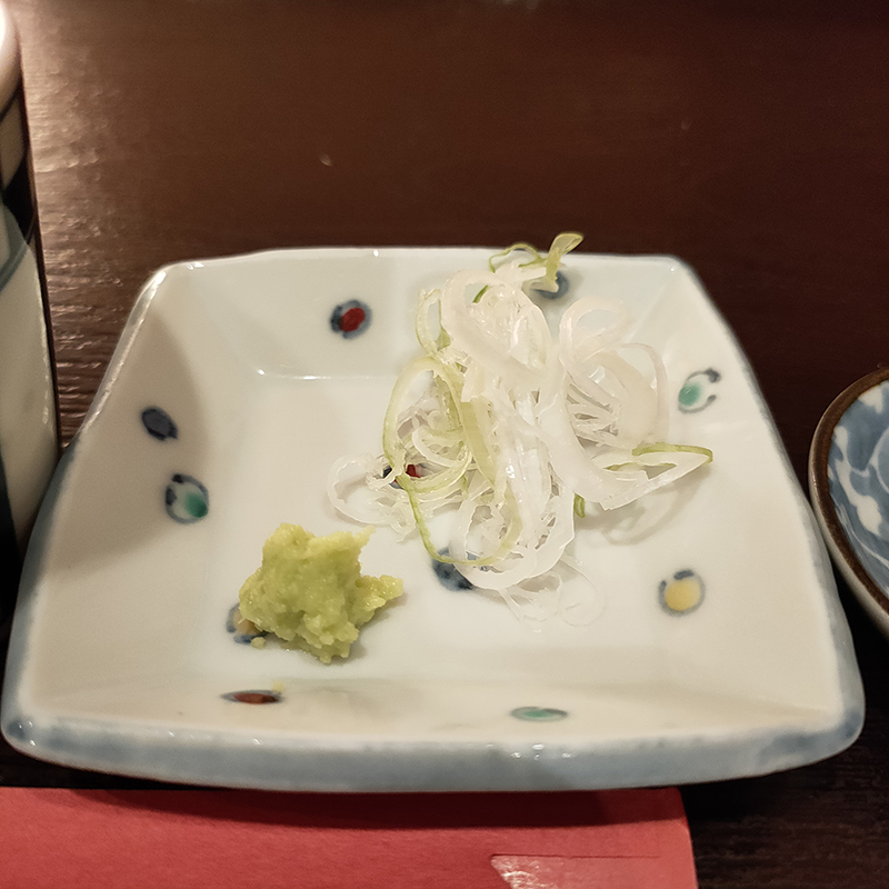 薬味にはねぎとわさび。わさびには本わさびを使用している点は高く評価したい。