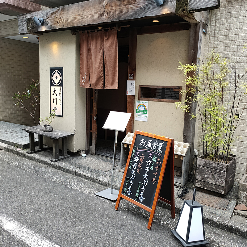 既に3組の先着が並んでいた。お店は靖国通りから少し脇道を入った路地にさり気なく暖簾を掲げている。