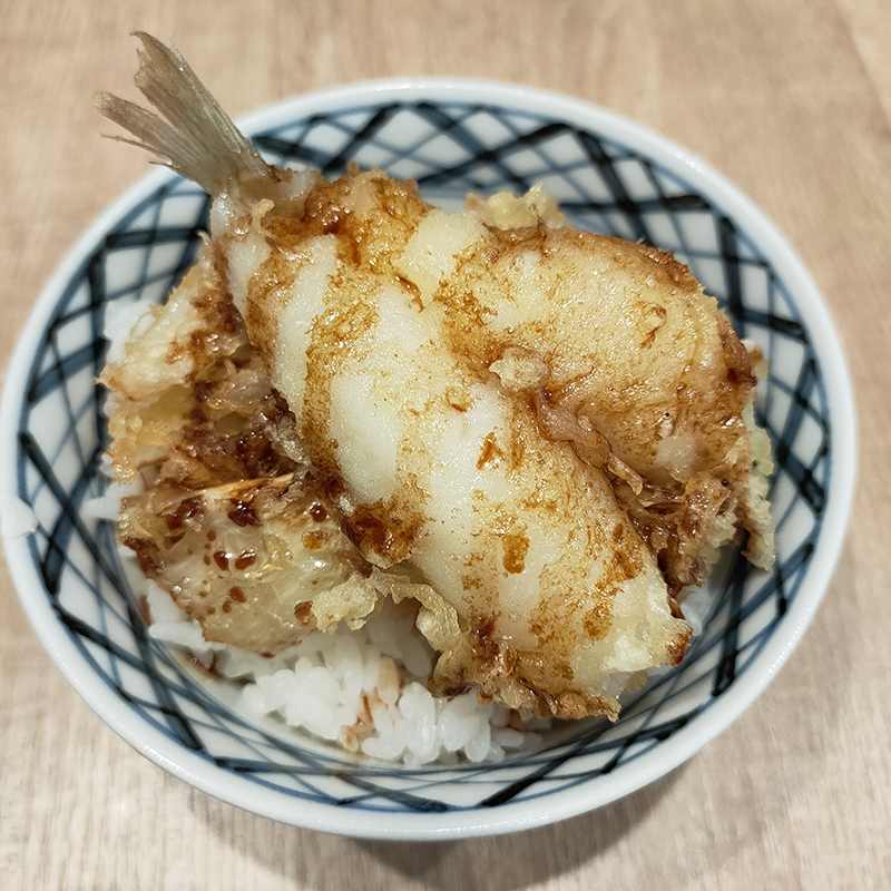 玉ねぎのかき揚げにキスが付いてくる。油切れよく想像以上の出来映え。
