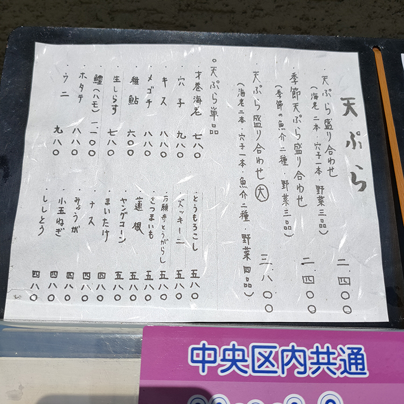 この日のお目当てのひとつは天ぷら。本業なみの品揃えは圧巻だ。