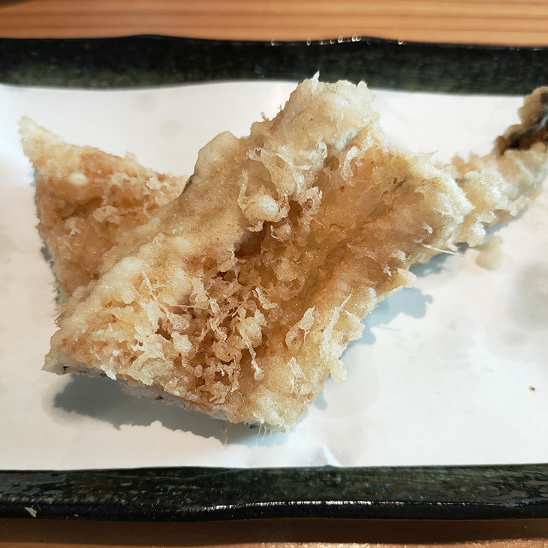 そして最後は穴子のてんぷら。旬の食材ということもあって臭みはなく、衣はサクサク、身はホクホク。
