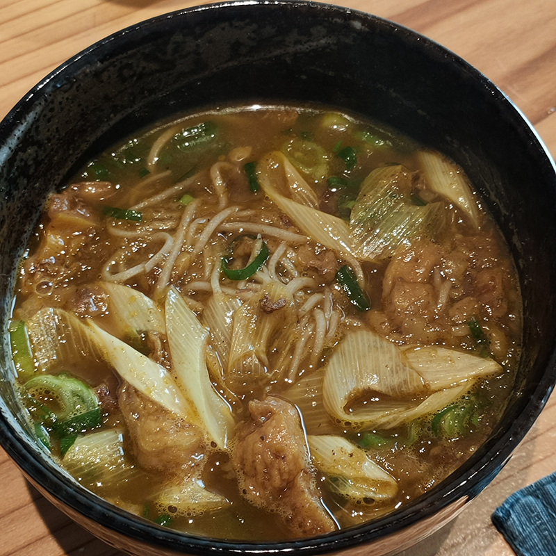 カレーそばは口当たりが柔らかいまろやかで優しい味わい。これくらいの量が丁度いい。