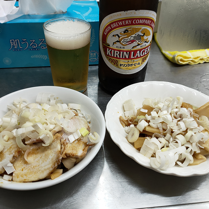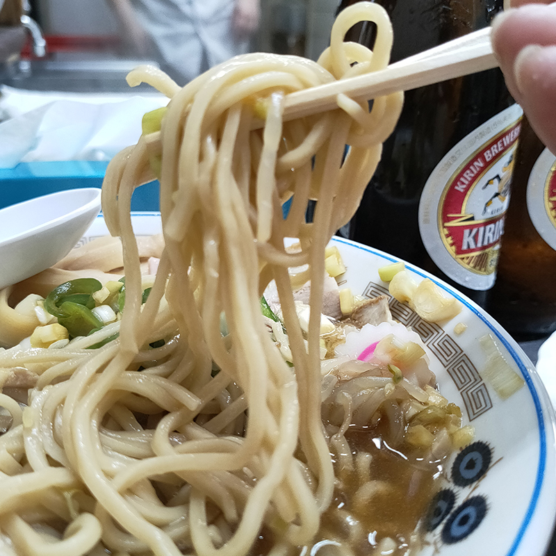 竹の子とチャーシューでビールを頂く。決して、クオリティが高いわけではないが、素朴な味わいに不思議と魅力がある。このラーメン前があってこそ光を増す。
