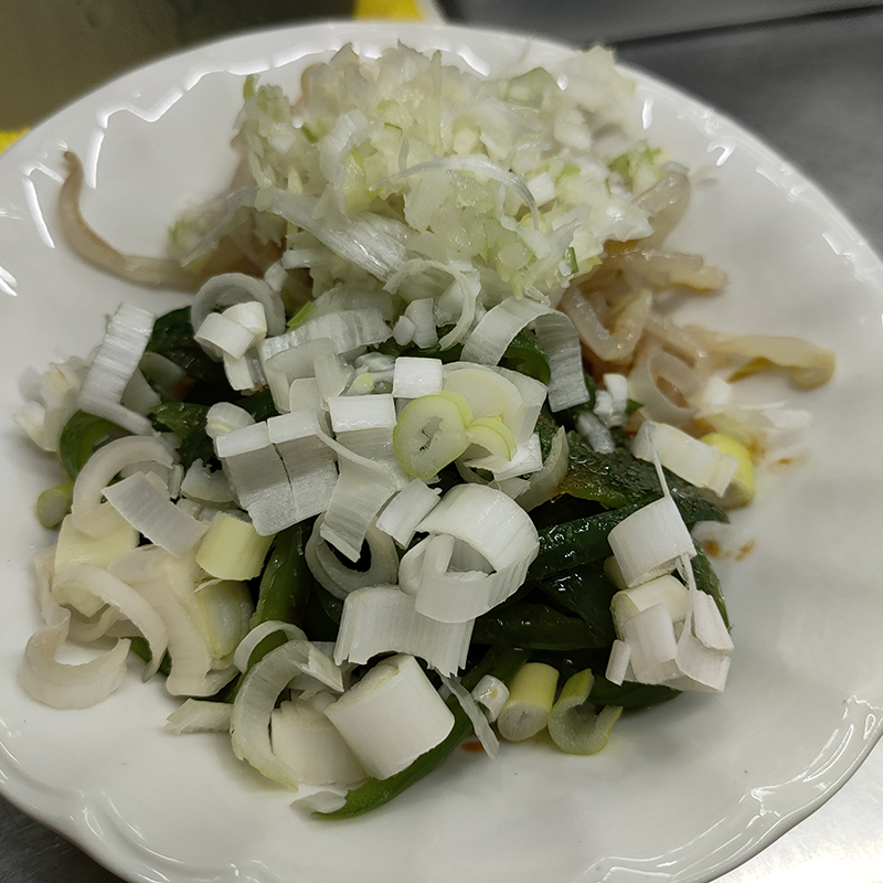 続いて、もやぴー。ピーマンが上に掛けられたラーメンの醤油ダレに意外にもマッチする。