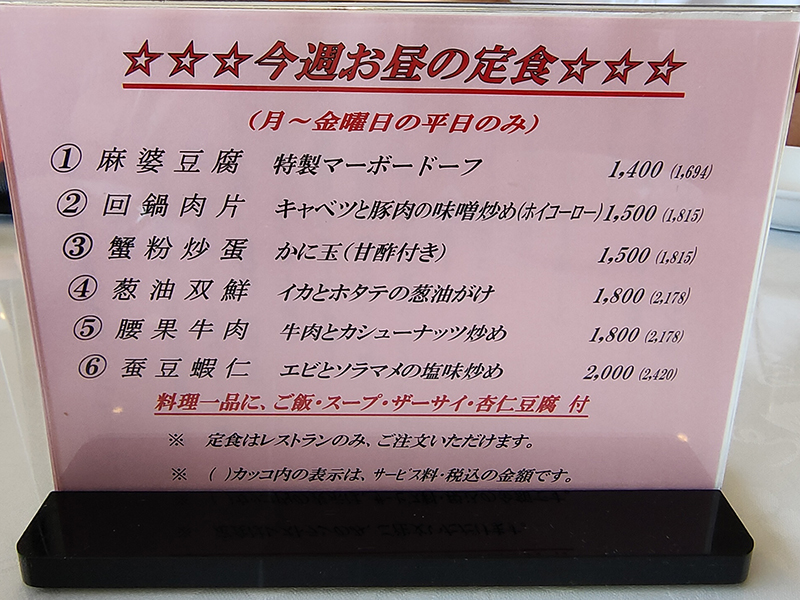 ランチメニューは1,000円台半ばからと日常のランチとしては少し高め。しかも税金とサービス料が別。
