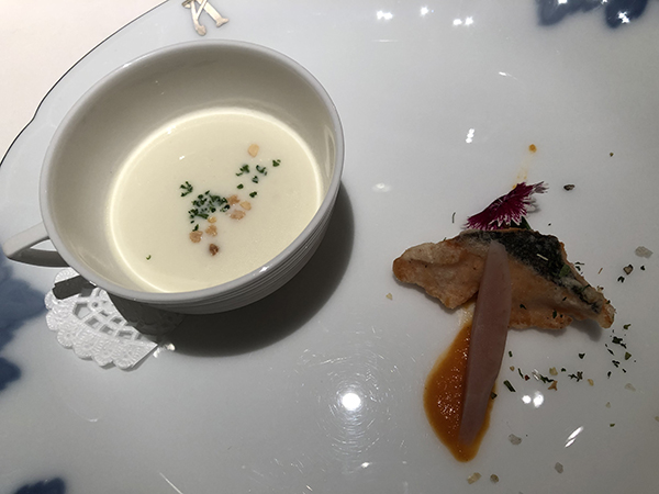 一方、鱒のフリットは衣が薄く、表面はサクッとした食感を残し、パプリカのソースとの相性がいい。コースメニューの中にいくつかフリットのメニューがあったが、恐らくシェフの得意な技法なのだろう。