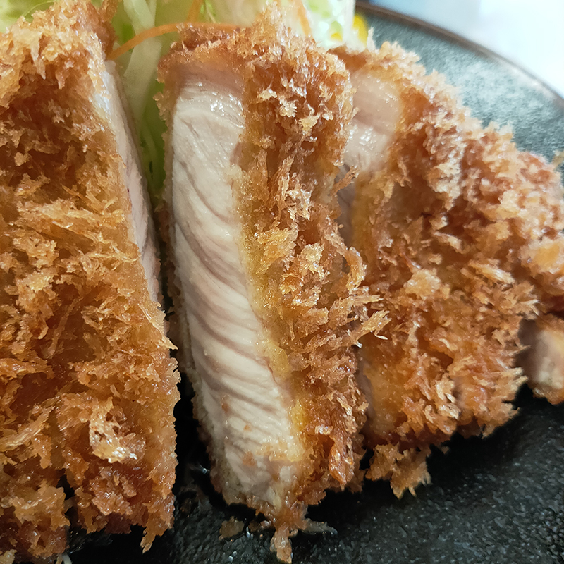 粗めのパン粉を使用した衣はサクサクとした食感だが、心持ち衣に残った油が気になった。肉は筋肉質のしっかりとした食感で林SPFらしい旨味がある。