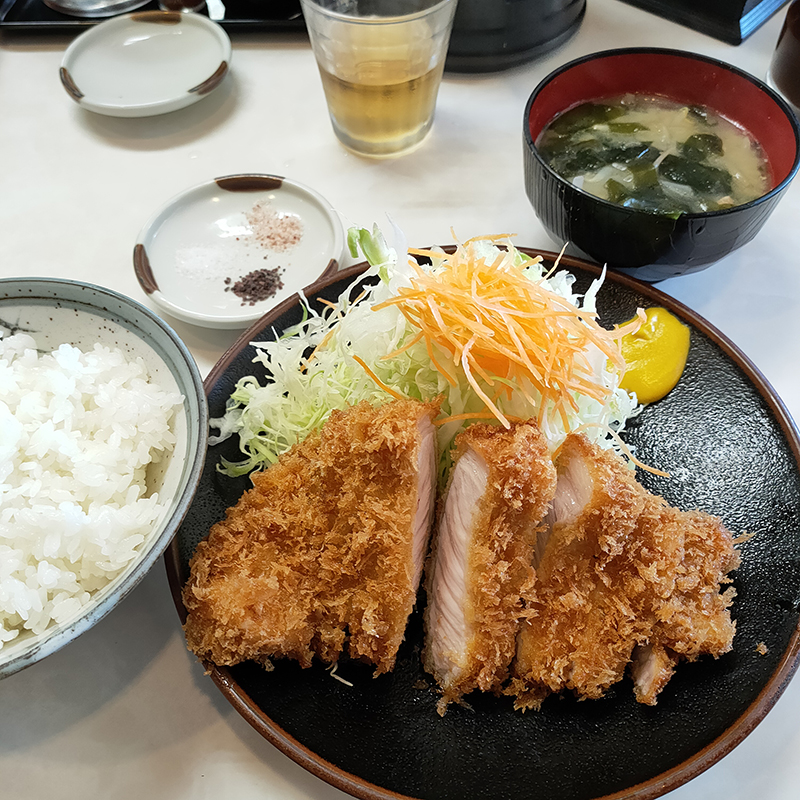 およそ10分ほどで供された。待っている人の数を考えると驚くほど早い。高温の油で揚げているのだろうか?肉の断面を見ると割としっかり目に火が通っている。かと言って火の通し過ぎということではない。