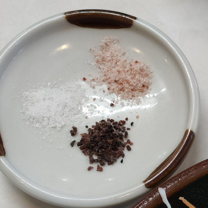 これを3種類の塩で頂く。個人的にはピンクソルト、ヒマラヤ黒塩、シチリア塩の順。ソースは甘みのタイプだが重すぎずこれはこれでいい。