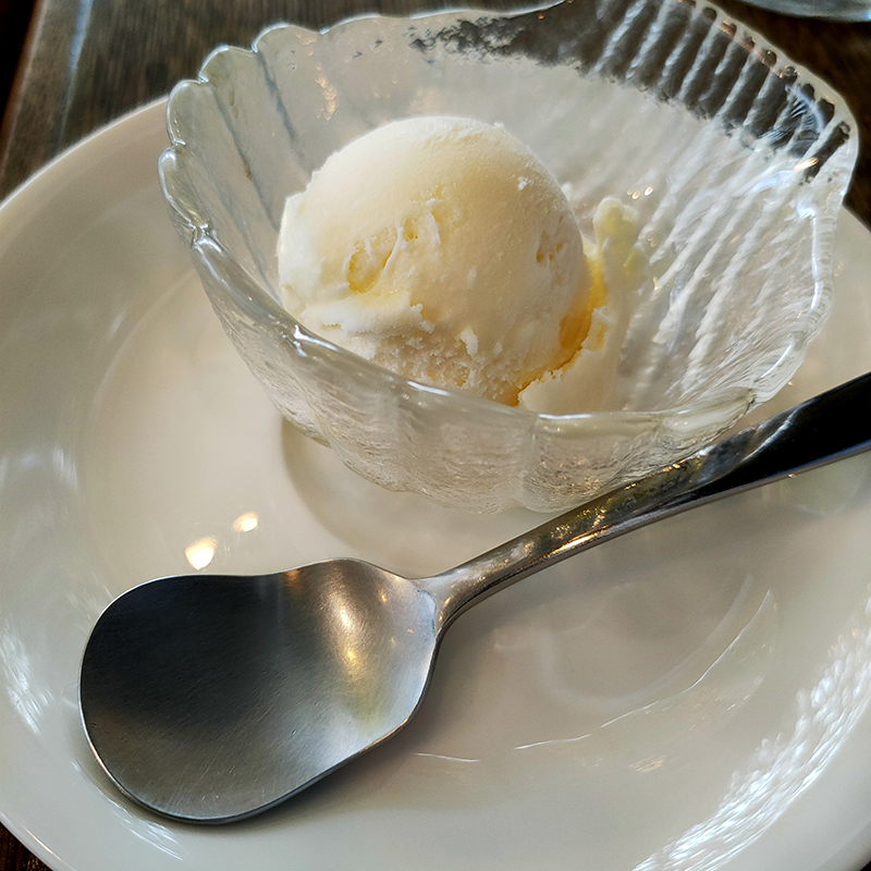 最後に食後のデザートのアイスクリームが付いてくる。予想外だったのでこれは嬉しい誤算。