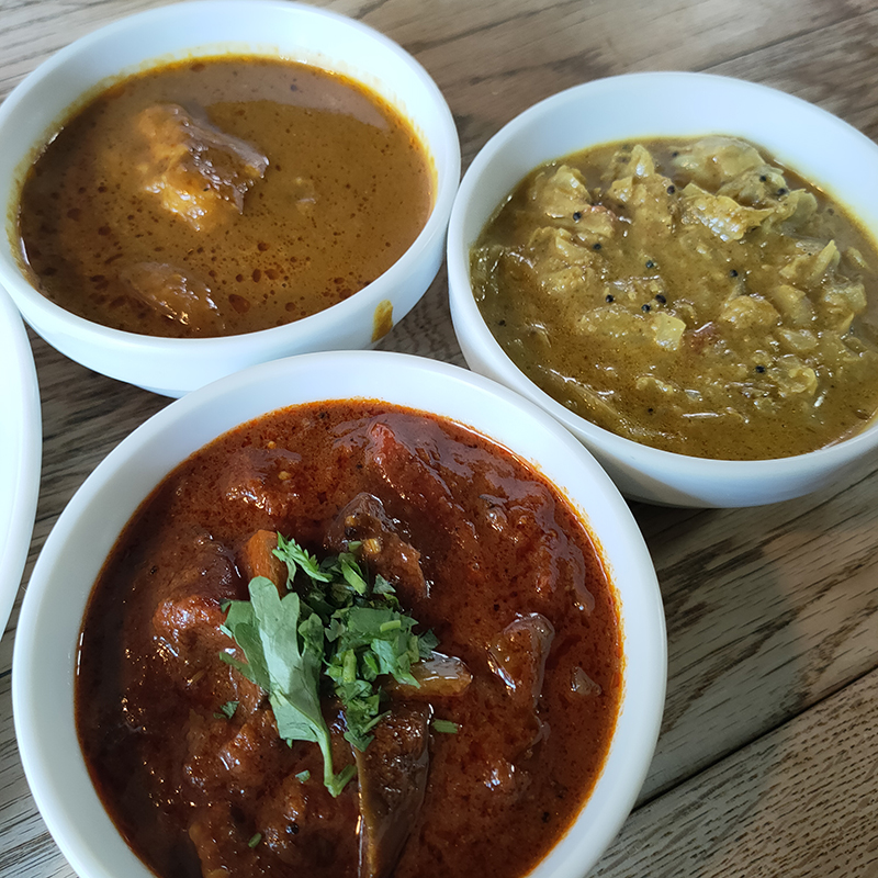 チキンカリー、ナストマトカリー、キャベツのココナツカリーの3種類でお願いした。