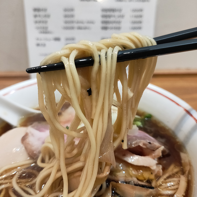 麺は三河屋製麺の中細ストレート。味わいもよく、スープの旨味がほどよく絡まる。