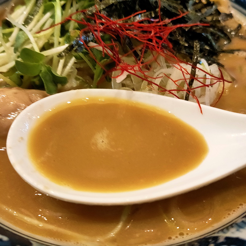 チャーシューが入っていないのはちょっと残念。まずは一番気になるスープを。