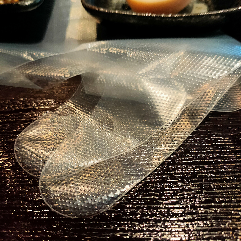 揚げたてのため、すこぶる熱い。とてもペラペラの手袋では熱さ対策にはまったくの無力。