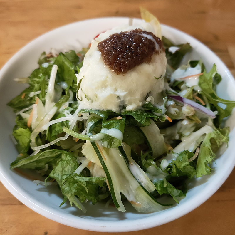 まず最初にそのサラダが運ばれてきた。選んだのはスパイシーじゃないポテトサラダ。