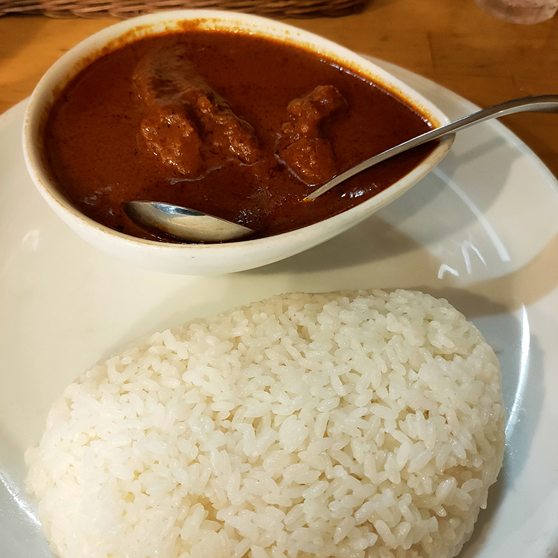 チキンカレーには甘口も用意されているが、ここは辛口一択。