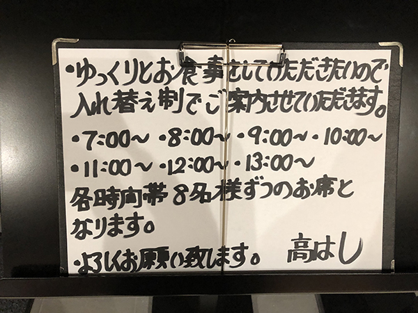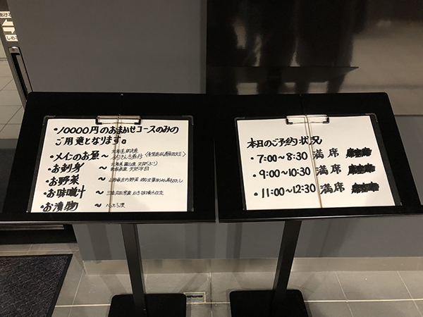 書かれている時間の10分前。店の前には誰も並んでない。特に満席とも書かれてはいないが、既に予約で埋まったのだろうか?